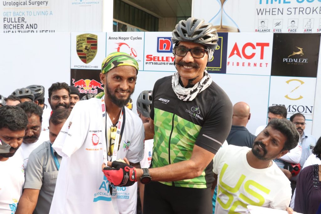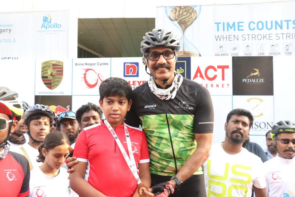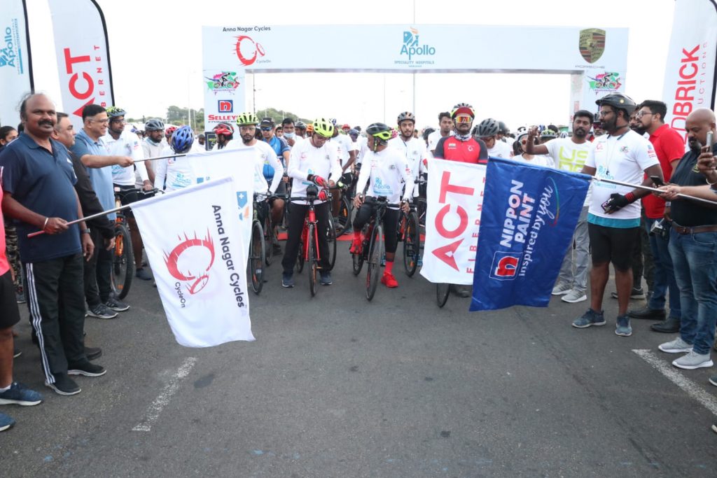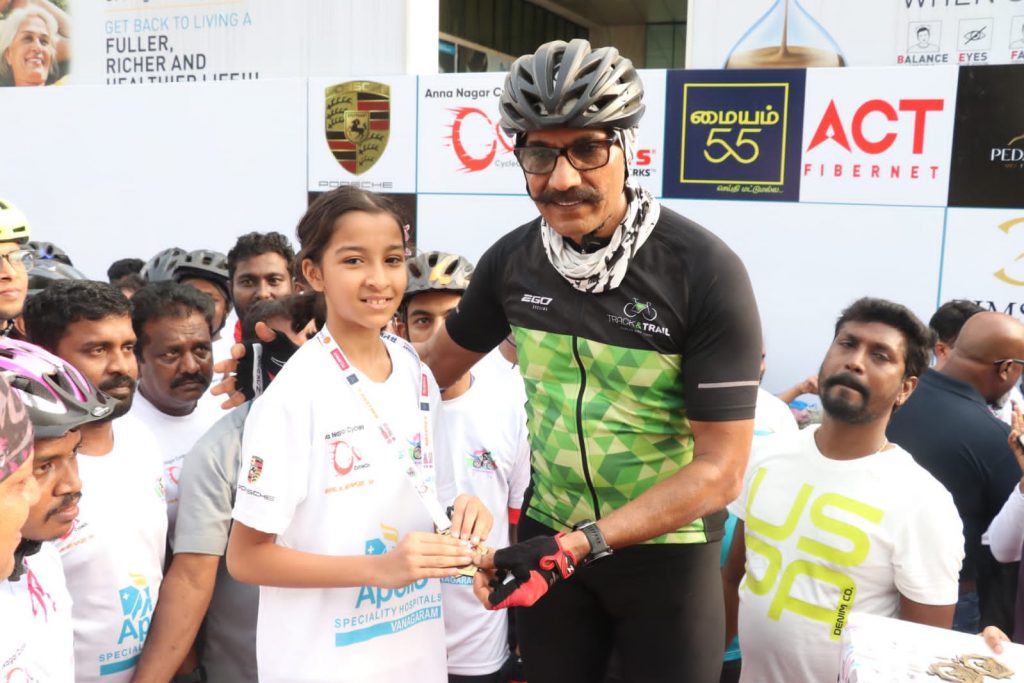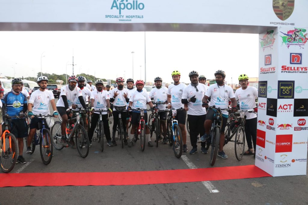 The rally attracted around 250 riders, including professionals and amateurs. The rally was flagged off by Dr C. Sylendra Babu IPS, Director General of Police, Tamilnadu. awarded medals to the enthusiastic cyclists at the finishing point in Vanagaram Apollo Hospitals Premises.