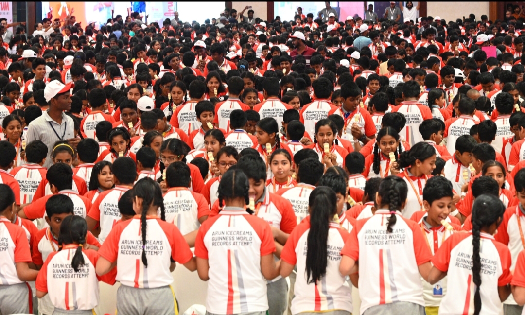 Arun Ice creams Sets Guinness World Record with over 4,000 Children in Chennai