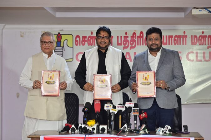 Prakash Jain, Aacharya srinivas srimali, and Jagadish Kadavul who met the journalists at the Chennai Press club said that Brahmarishi Guruvananda Maharishi has been traveling the world and doing spiritual work for world peace and mental health and all the great leaders have gained clarity by listening to his Mahasad Sangha.