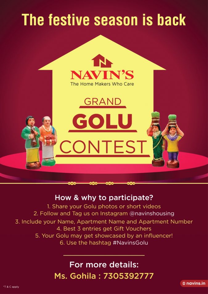 With this competition, Navin’s offers a chance to let their imaginative skills shine as they carefully set up dolls and figurines that pay homage to the cultural significance of Navaratri. Once their Golu display is ready, individuals are required to capture a photo or short video of their creation and share it on Instagram , tagging @navinshousing mentioning their name, apartment name and apartment number; while also including the hashtag #Navin’sGolu in their social media post.