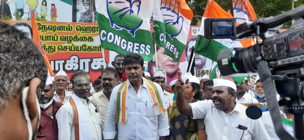 சென்னை, 26 ஜூலை 2022: நேஷனல் ஹெரால்ட் வழக்கு சம்பந்தமாக அகில இந்திய காங்கிரஸ் கமிட்டி தலைவர் அன்னை சோனியா காந்தியை, விசாரணைக்கு அழைத்திருக்கும் அமலாக்க துறையை கண்டித்து, சென்னை விருகம்பாக்கம் ஆற்காடு சாலையில், மகாத்மா காந்தியின் வழியில் சத்தியாகிரக போராட்டம் நடைபெற்றது.