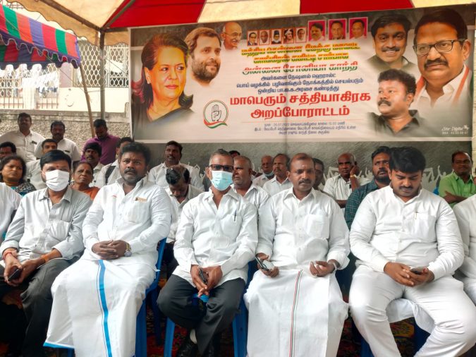 தமிழ்நாடு எஸ்.சி. துறை தலைவர் எம்’பி. ரஞ்சன்குமார் தலைமையில் நடைப்பெற்ற இந்த அறப்போராட்டத்திற்கு சிறப்பு அழைப்பாளர்களாக