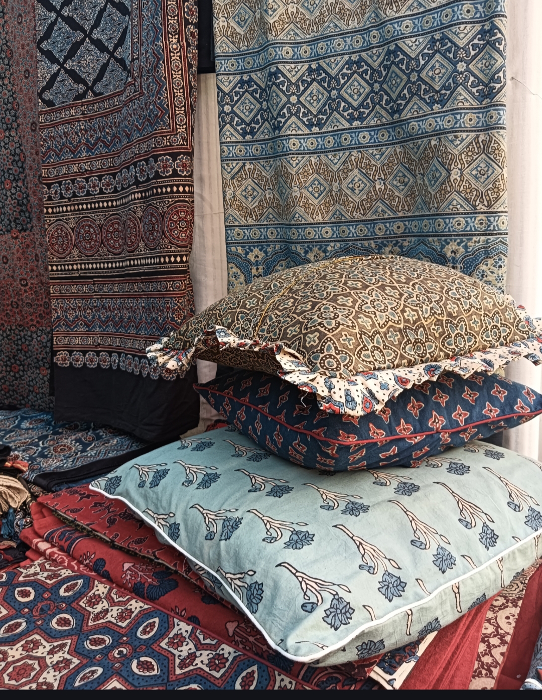 - Textiles & Weaves: Ajrakh block prints, Ikat weaving, Chanderi, Maheshwari, Jamdani, Banarasi weaves, Bandhani, Patteda Anchu, Patola weaving, Gamchha weaving, carpet weaving from Uttar Pradesh and Kashmir, and loom-woven textiles from across the country.