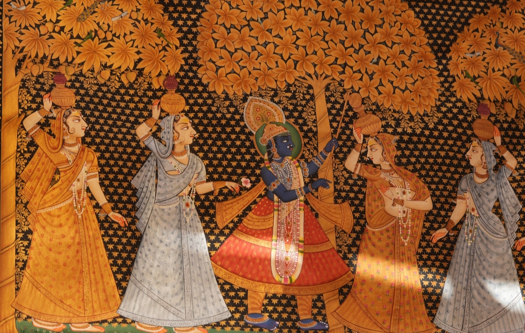 - Gold-leaf embossed Pichhwais from Rajasthan