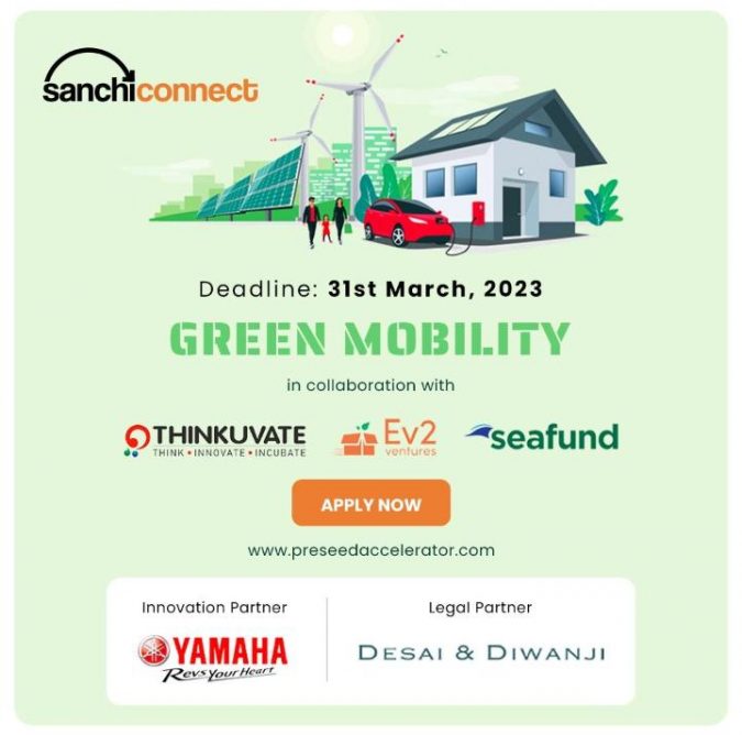 Chennai, 27th March 2023: In collaboration with leading micro venture funds in mobility and Yamaha as Innovation partner, Sanchiconnect- a business-focused network for deep tech startups, investors, and corporates, launched a preseed green mobility program for Indian EV startups in early March. This will be a 3-month accelerator program with a Go-to-Market emphasis and fund infusion by three micro venture capital firms, targeting very early-stage sustainability (green mobility) businesses. Eight early-stage entrepreneurs in the field of green mobility will get Rs 75 lac INR each from the Pre-seed Accelerator-Green Mobility, in partnership with ThinKuvate, EV2 Ventures and SEA Fund as financial partners. The deadline for applications is March 31. After that date, screening and selection will start, along with due diligence, with Desai & Diwanji Law Firm serving as the program’s legal partner.