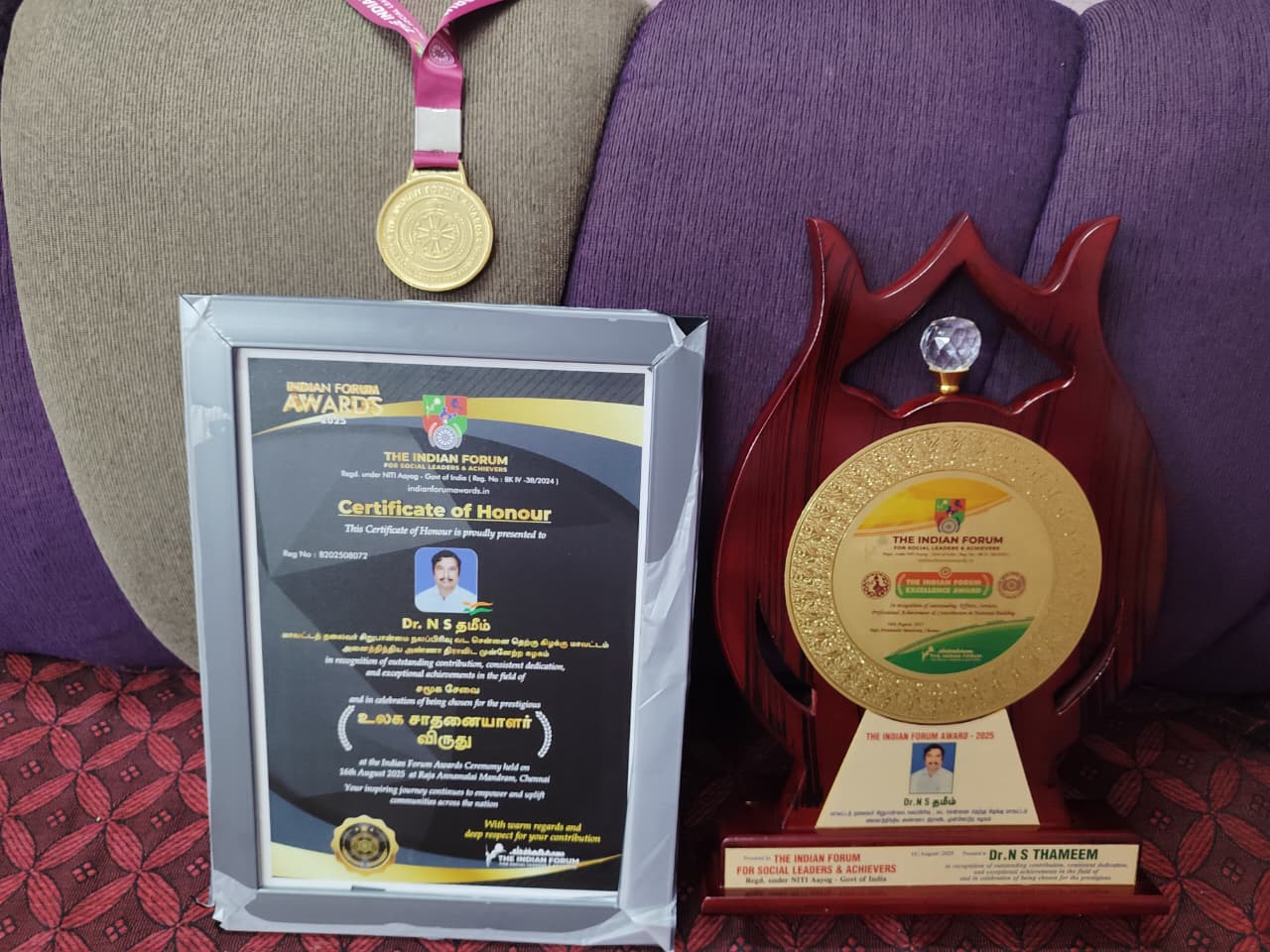 உலகசாதனை ஆளர் விருதைப் பெற்றுக் கொண்டவர் எம்ஜிஆர் பக்தர் Dr N S தமீம் மாவட்ட தலைவர் சிறுபான்மை நலப்பிரிவு வடசென்னை தெற்கு கிழக்கு மாவட்டம் அனைத்திந்திய அண்ணா திராவிட முன்னேற்ற கழகம்