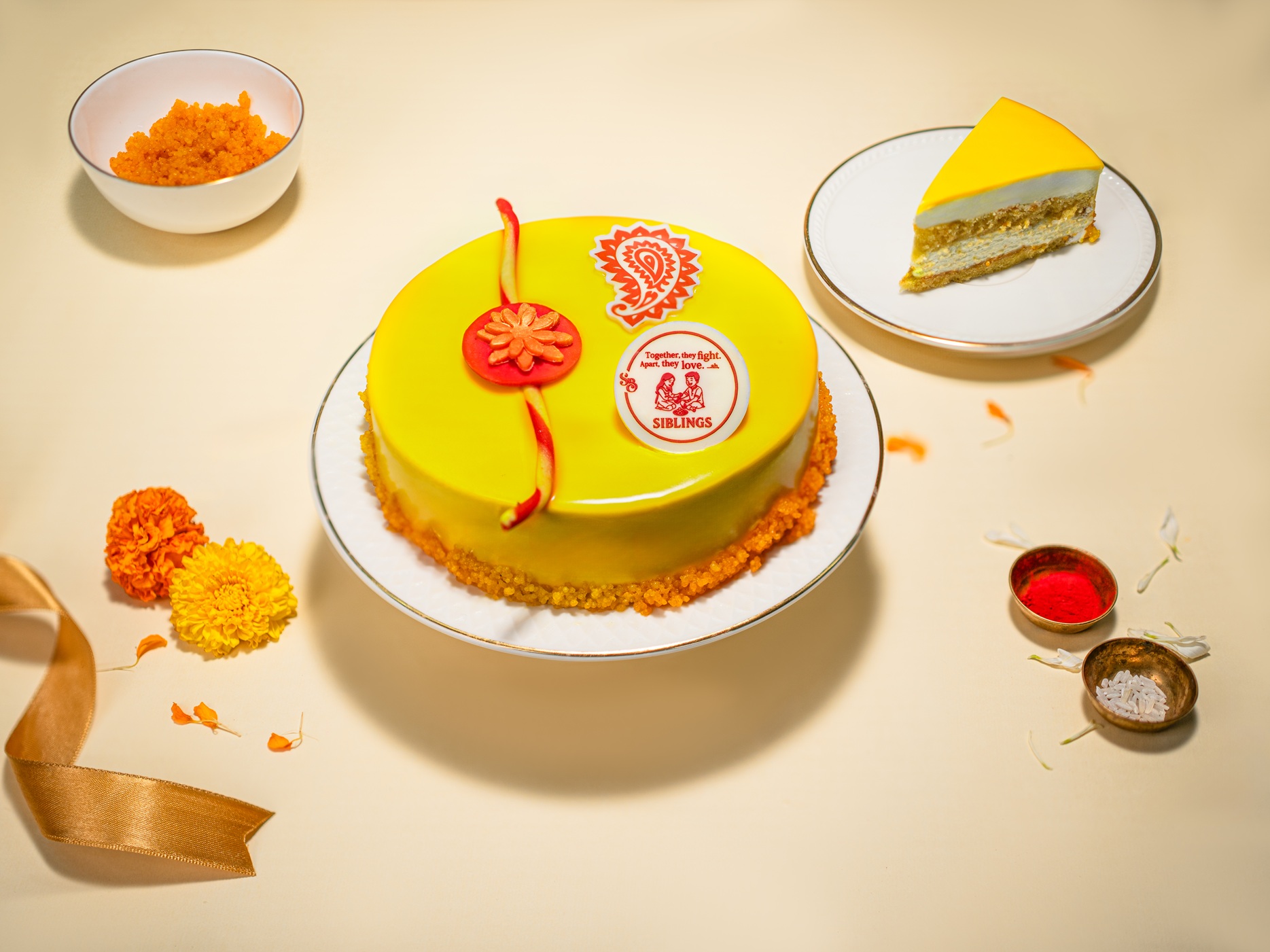 Rakhi Special Motichoor Cake — Because She Deserves a Showstopper: Not your regular laddoo. This stunning layered cake features soft sponge, silky diplomat cream, and laddoo crumble, all wrapped in a rich glaze. A celebration she can cut into perfect for the sister who’s always gone above and beyond.