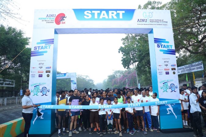 Chennai, 5th March 2023: Ahead of World Kidney Day (which falls on March 9th ), AINU Hospital Chennai organized a 5K Run to spread awareness about Kidney health on Sunday at the Olcott Memorial Higher Secondary School, Besant Nagar. Over 1000 participants, including fitness enthusiasts, professional runners, families, corporate employees, and students, volunteered to support Kidney health awareness.