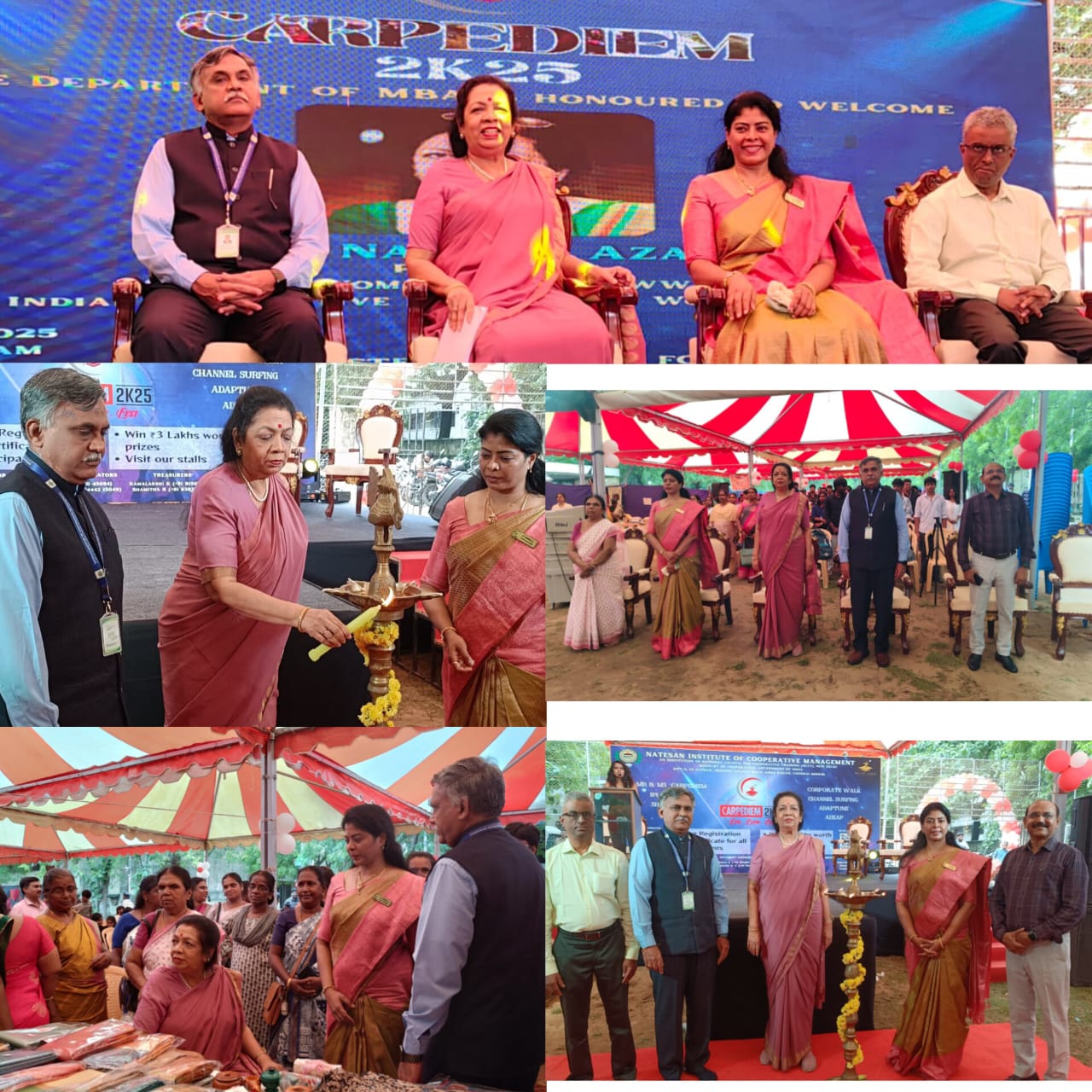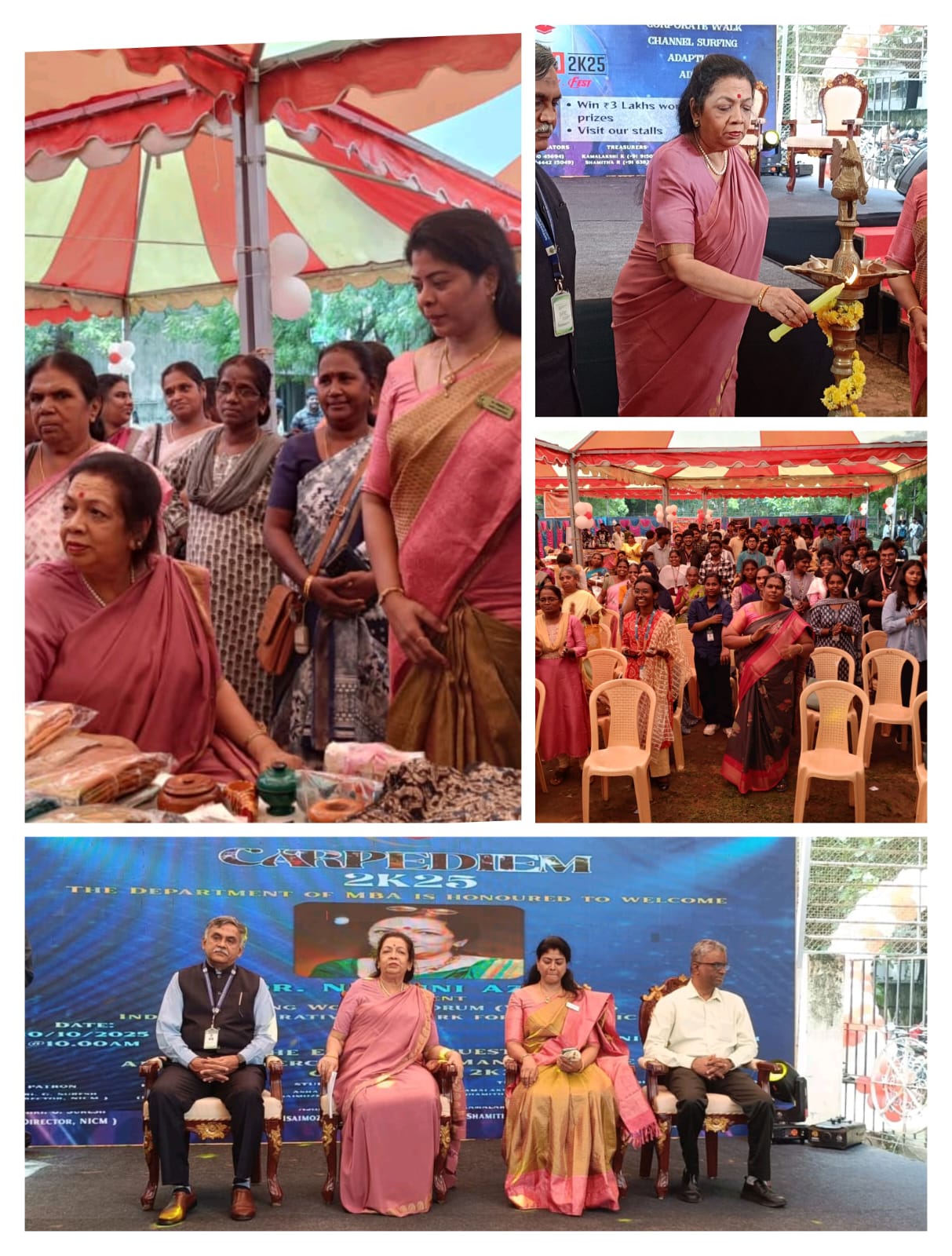 Congratulating the NICM’s, Director, the MBA Department its HOD Dr.U.Homiga, Staff and students Dr.Azad said the new ‘CARPEDIEM 2K25’ is very good innovation with artisanal material from several states have sent with handicrafts, Sarees etc., Cooperatives, weavers from Kanchipuram (WWF-ICNW) Andhra Pradesh Kalamkari, Bidiri work from Bidar (Karnataka – WWF/ICNW) Lac Wooden Toys from Channapatna.