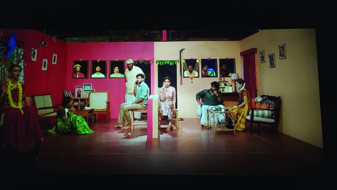 Iniyan and Rene belong to a theatre group and have been asked to play leads in a show about love. There’s Arjun (Kalaiyarasan), who is a conservative guy from a small town. He is a guy heavily influenced by WhatsApp forwards about women’s modesty and their coy behaviour. He is engaged to Roshini but gets attracted to Rene. In their troupe, there’s a lesbian couple, a gay couple in the initial stages of their relationship, a transwoman who is in a relationship with Joel and many more.