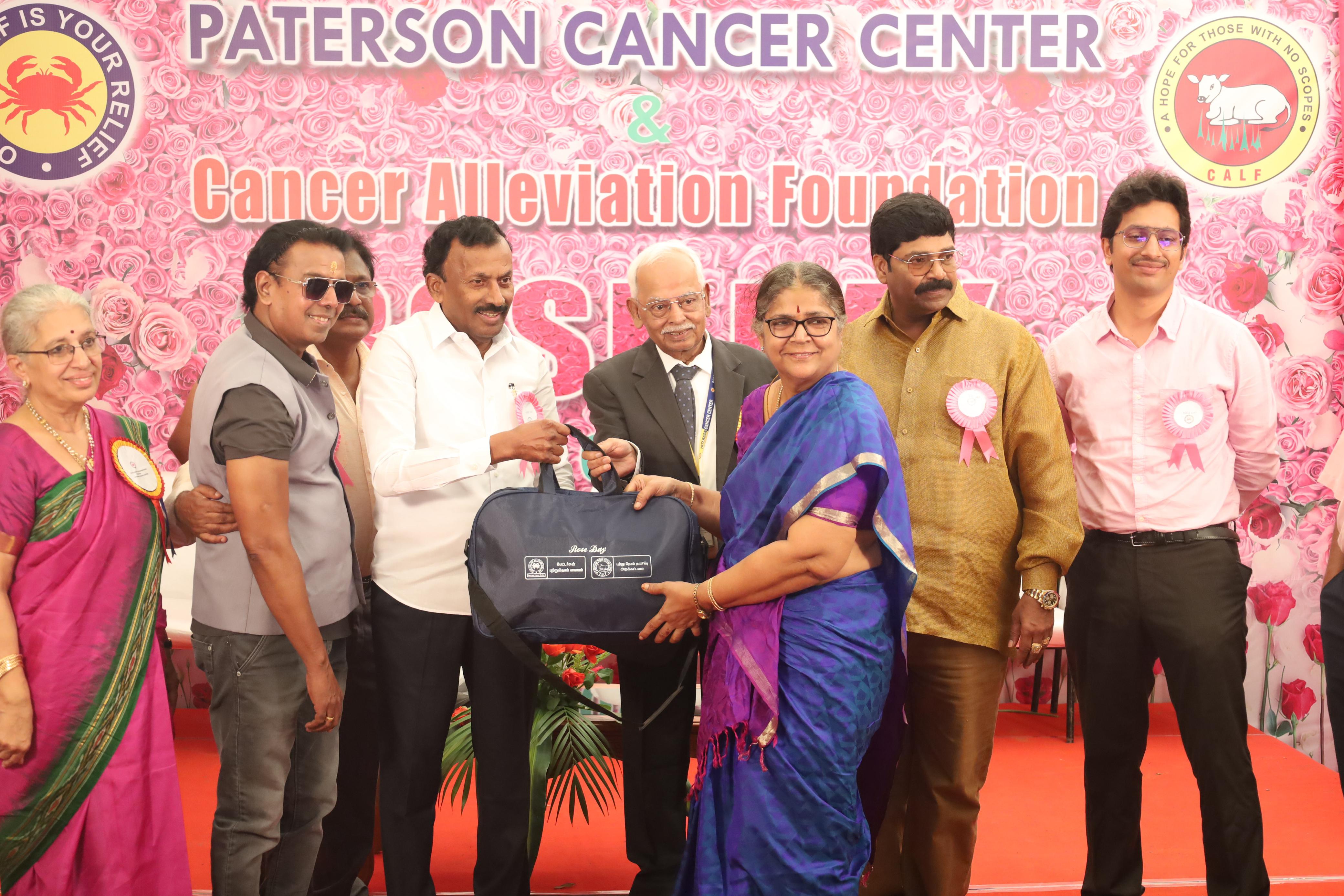 During the celebration, Dr. S. VijayaRaghavan, Managing Director of Paterson Cancer Center, delivered a note of gratitude to the guests and emphasized the importance of adhering to complete treatment for full recovery. He also pledged ongoing financial support for underprivileged patients through CALF, with the help of generous philanthropists. Dr. VijayaRaghavan personally distributed utility kits containing essential daily items to all patients.