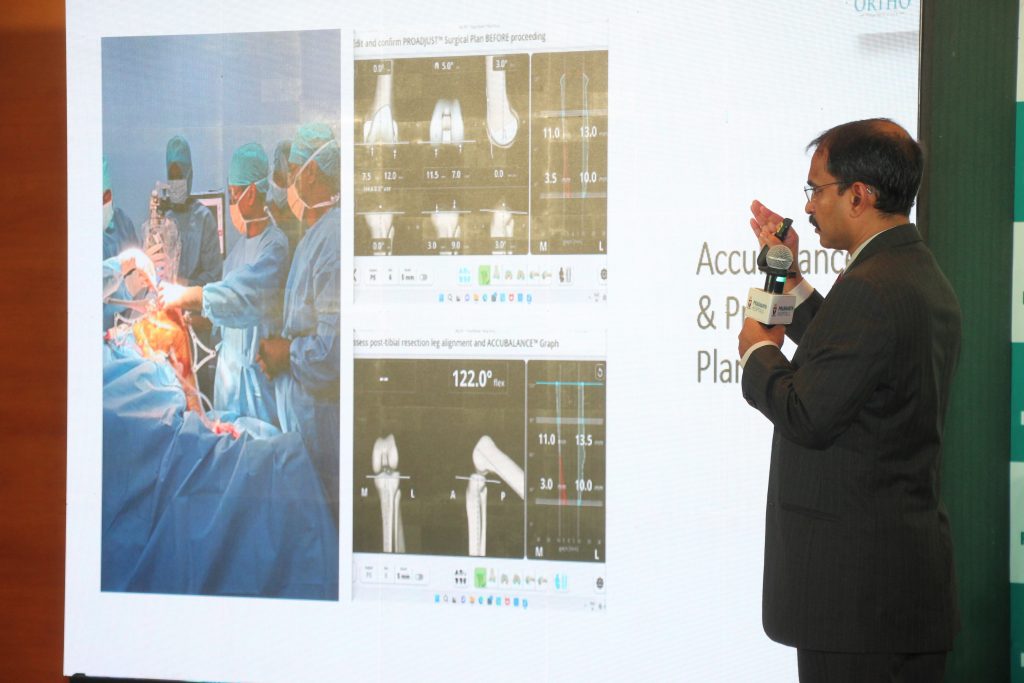 Dr. Arumugam S added– “In TKR aligning the knee to the pre-arthritic state is of key importance in the ease of recovery of the patient. By using this 4th generation Vely’s Robot, I am able to align the knee to perfection. I do a Personalised Alignment for each knee , thereby aligning each leg to its Pre Arthritic State. This gives all my patients a very Happy Knee. This helps my patients walk with ease and recover faster”.