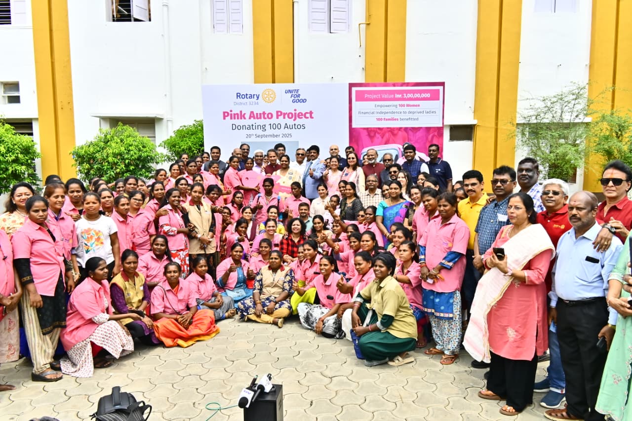 Chennai, September 20, 2025 — In a powerful demonstration of service and social impact, Rotary District 3234, led by AKS Rtn. Vinod Saraogi, District Governor (2025–26), successfully hosted the Pink Autos Distribution Ceremony today at AM Jain College, Meenambakkam, at 12 pm. A total of 100 Pink Autos were distributed to women beneficiaries, marking a pivotal moment in Rotary’s mission to uplift communities through sustainable empowerment and inclusive development.