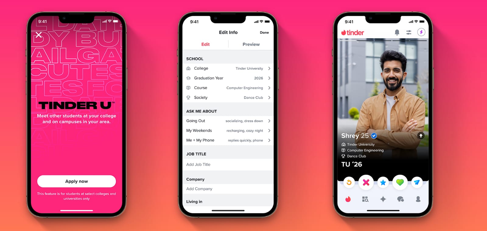 What sets Tinder U apart? Students can add their college details, and showcase the clubs and societies they belong to, making it easy to match with peers who share similar interests.