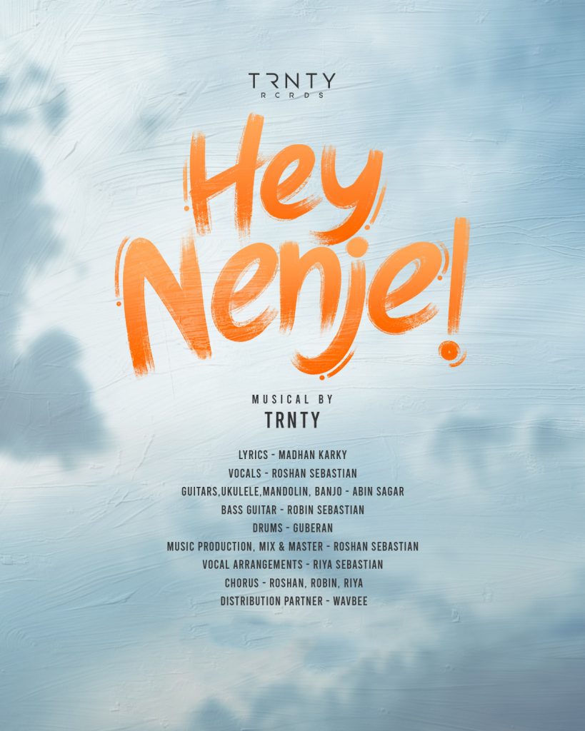 Immerse yourself in the harmonious synergy of sibling band TRNTY with their soulful creation, “Hey Nenje.” Comprising Roshan, Robin, and Riya Sebastian, this trio transcends familial bonds to craft a captivating tapestry of sounds that beckon listeners into their world.