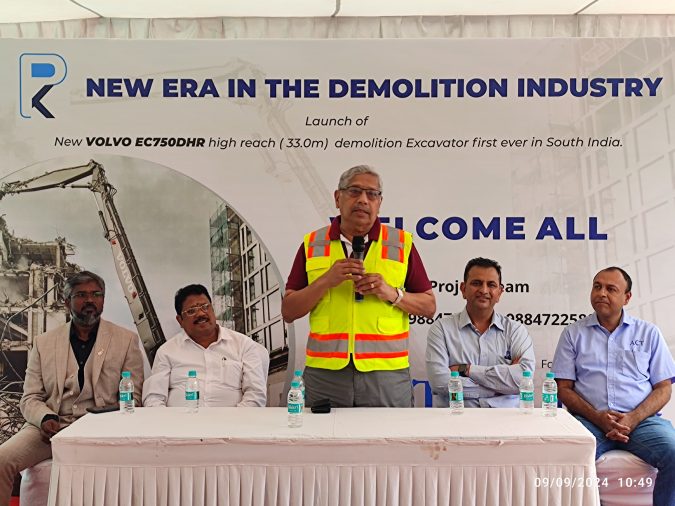“We are thrilled to partner with PK Unique Projects, a leader in the demolition sector, and provide them with our advanced EC750DUHR crawler excavator. This machine represents the best of Volvo’s cutting-edge technology, delivering unmatched power, precision, and safety in the most challenging environments. Through the use of the EC750DUHR crawler excavator, we are setting new benchmarks for sustainable and efficient demolition practices, ensuring that projects are completed with minimal environmental impact while also prioritizing the safety of operators and workers alike.”, said Mr Dimitrov Krishnan, Managing Director Volvo CE India.