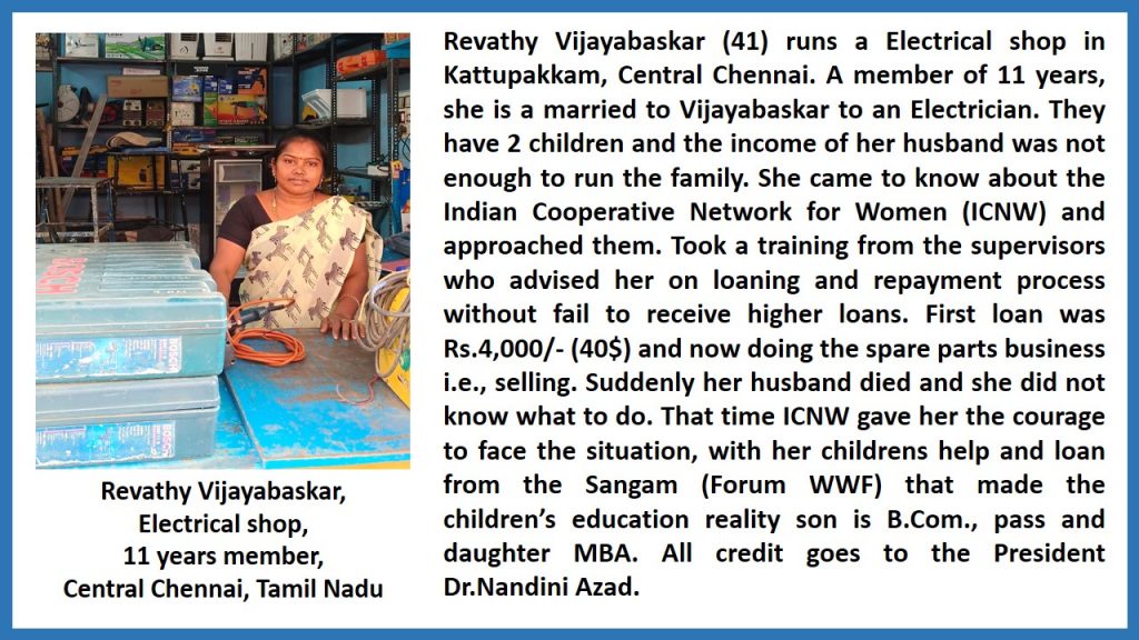 - Ms. Revathy Vijayabaskar, Electrical Shop, Central Chennai, Tamil Nadu (T.N.).