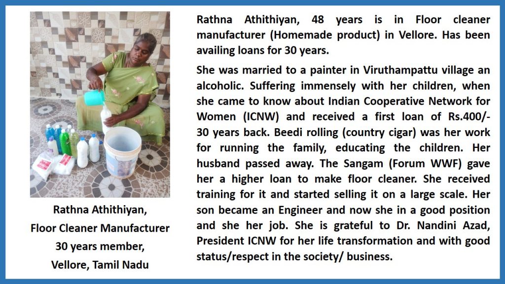 - Ms. Rathna Athithiyan, Floor cleaner manufacturer, Vellore, Tamil Nadu.