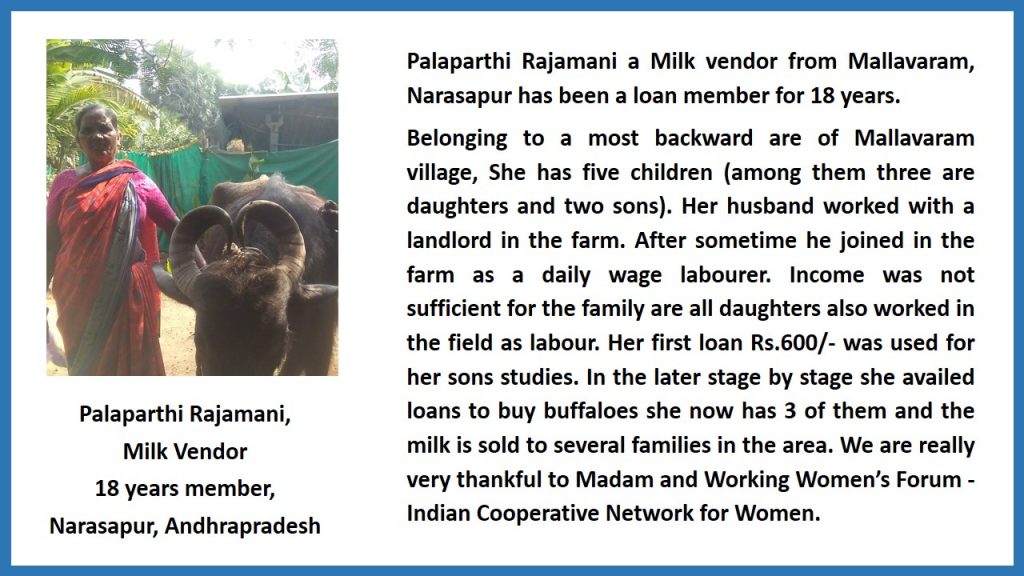 - Ms. Palaparthi Rajamani, Milk vendor, Narasapur, Andhra Pradesh,